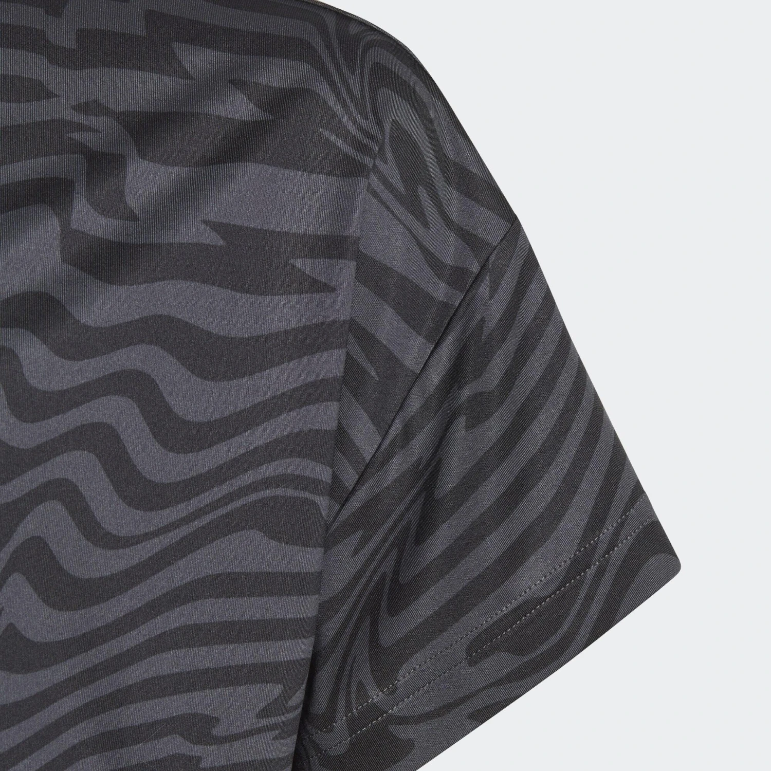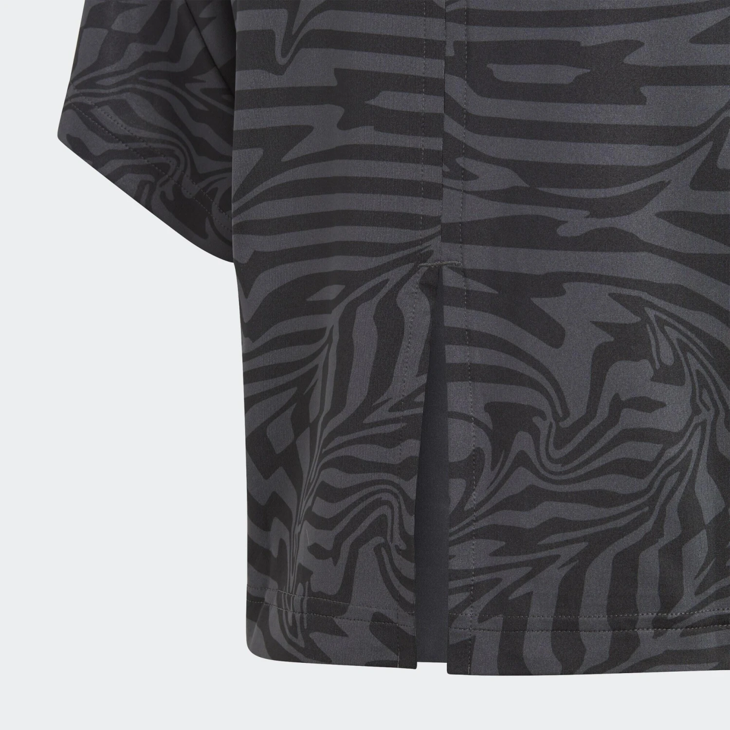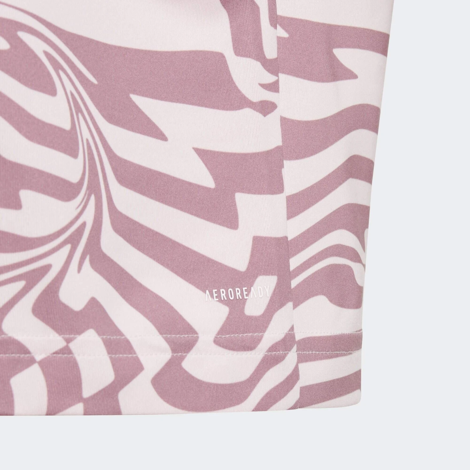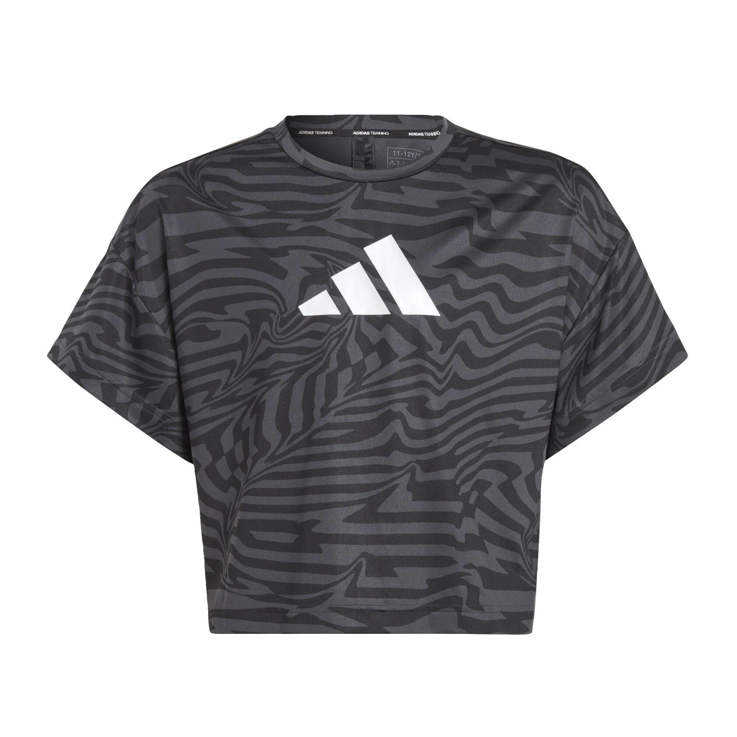 Teaming easily with everything in your closet from leggings to loose-fitting jeans, this juniors’ adidas tee lends itself to regular wear. You’ll want to show off its dynamic print at every opportunity. Lightweight, soft and made with AEROREADY technology to help you stay dry, it keeps you running around comfortably all day long. A classic adidas Badge of Sport completes the look.Made with a series of recycled materials, and at least 70% recycled content, this product represents just one of adidas’ solutions to help end plastic waste.