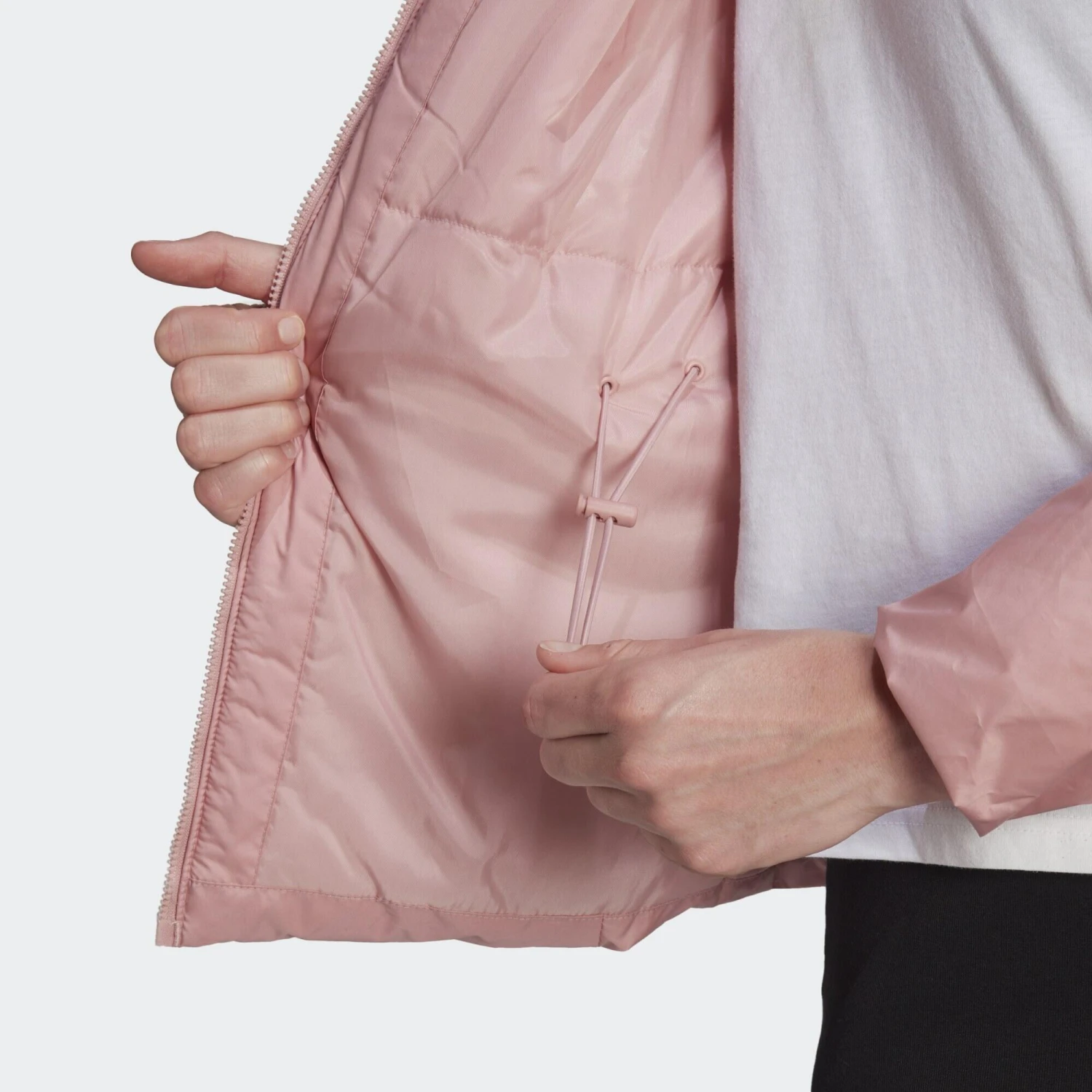 Look good. Feel good. Pull on this adidas jacket for insulated warmth when the temperature drops. Synthetic insulation adds warmth without bulk for easy movement and all-around wear. From the slim fit and adjustable waist to recycled materials, it feels good on every level.