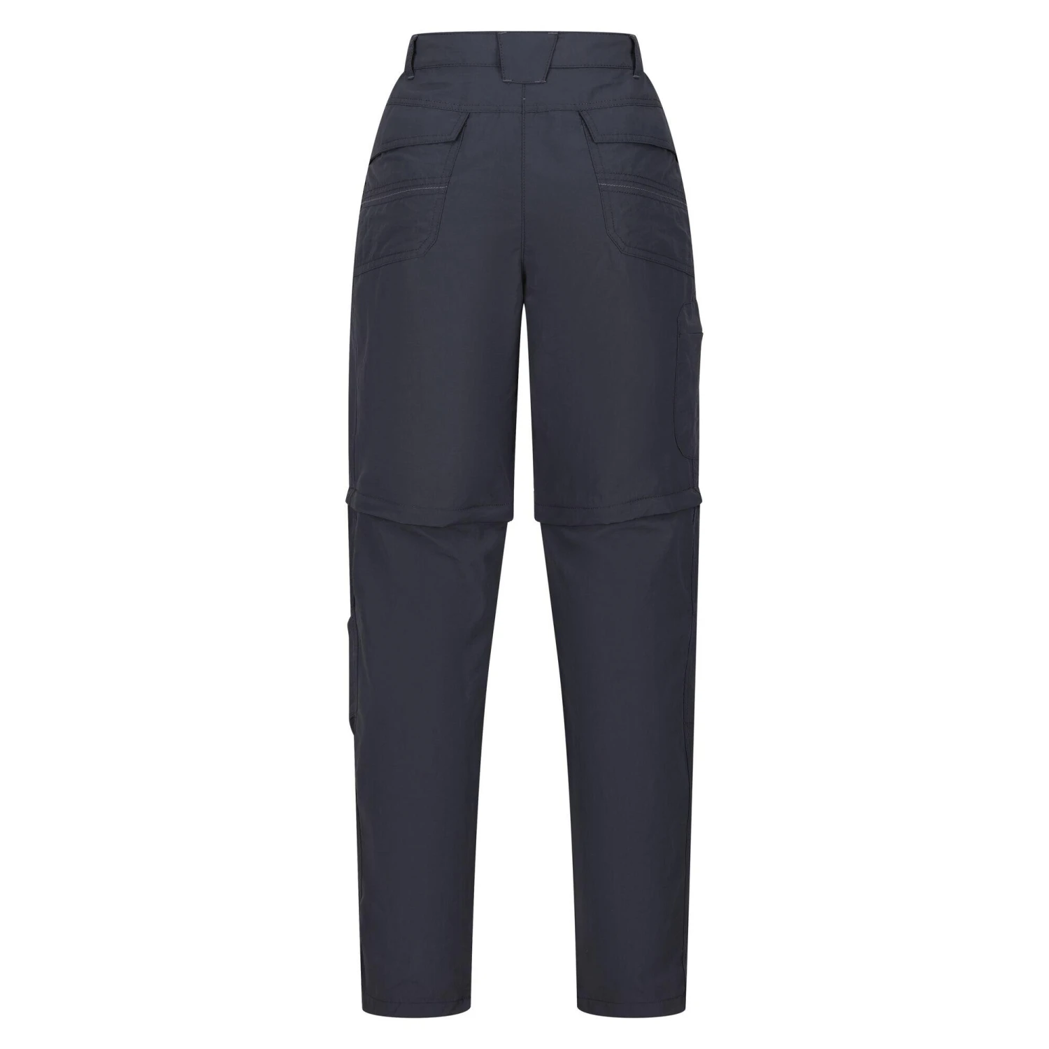 Lightweight hiking trousers with zip-on, zip-off legs. Brilliantly practical for overnight stays and day trips in changeable weather. Made from durable polyamide fabric with a DWR (Durable Water Repellent) finish to stave off showers. The wrinkle-resistant material is soft and light to wear and dries quickly when wet. Elastic at the waist and 2-way adjust toggles at the hem deliver a close, comfortable fit that moves and stretches with you. Packs down small. For travelling light and far. With the Regatta print on the left leg.