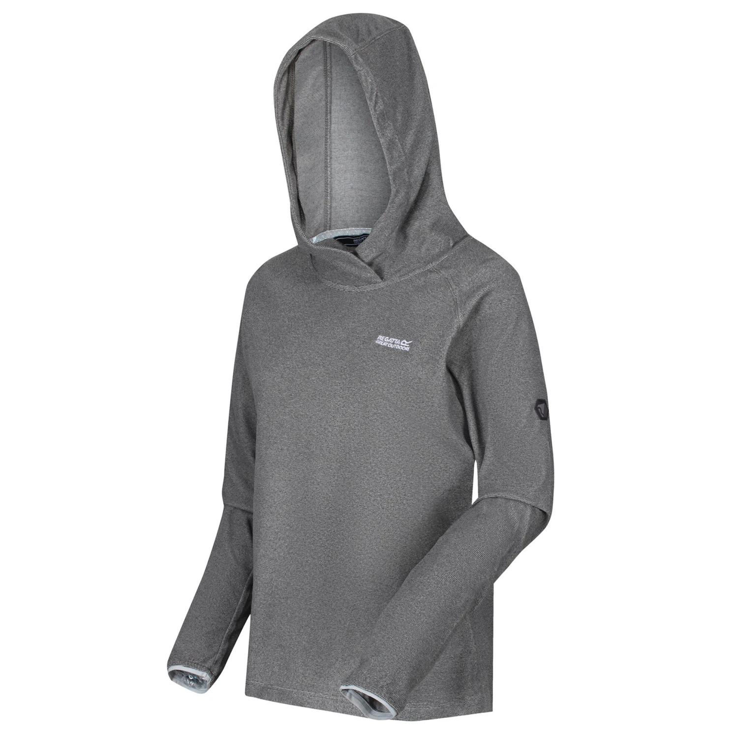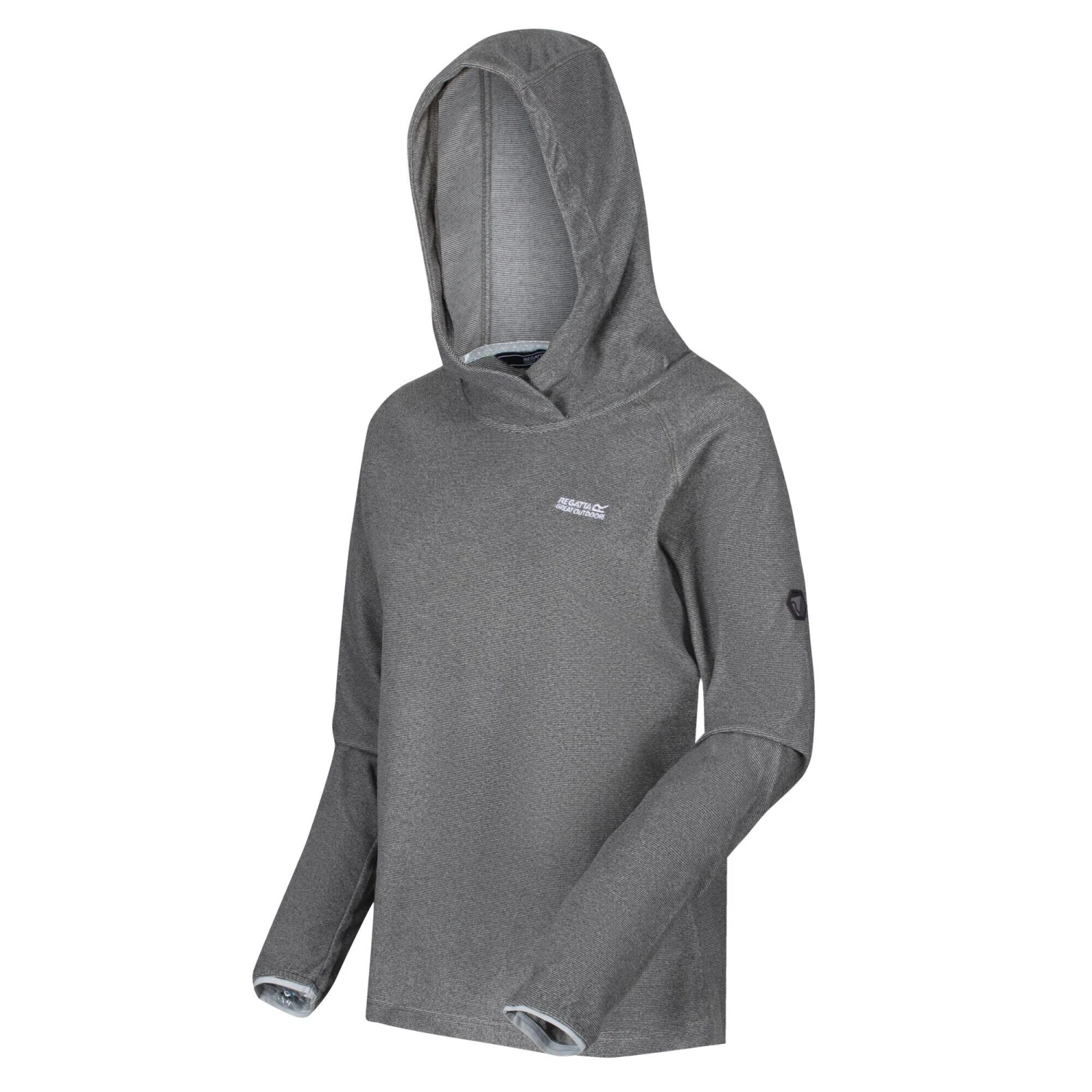 The women’s Montes Hoody Fleece Sweater from Regatta is made of soft-touch, mini-stripe micro-fleece fabric with a raglan sleeve design. With the Regatta Outdoors embroidery on the chest.
