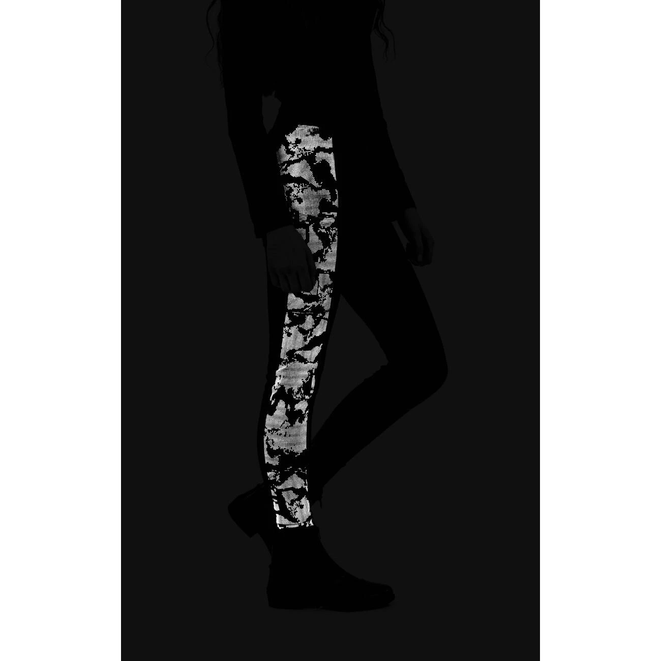 90% Polyester/10% Spandex blend, high-rise waistband, reflective camouflage print down both legs, slimline phone pocket on each leg, reflective Whitaker printing below waistband, silicone knee grips. Thick Poly/Spandex Mix Wide Supportive Waistband 3D Printed Silicone Knee Patches