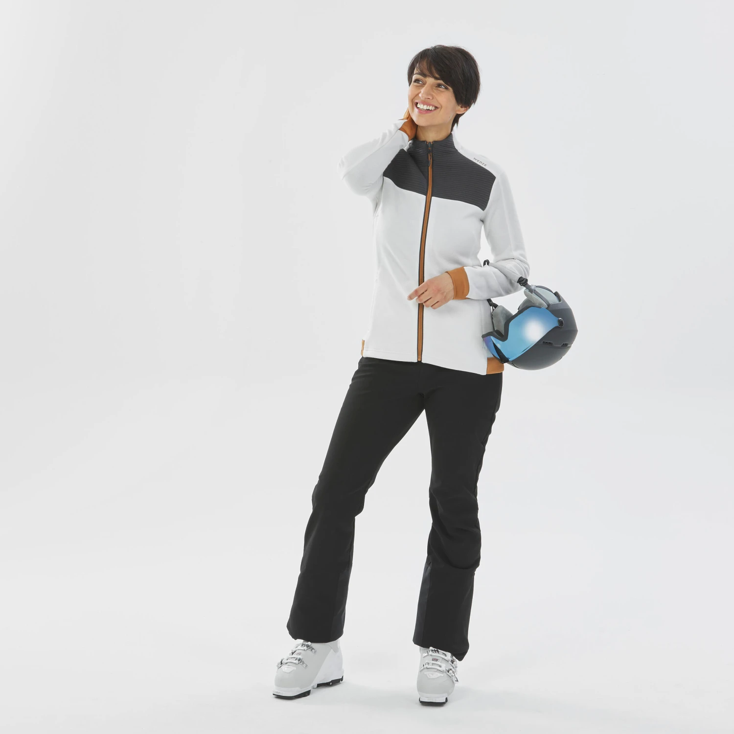 The cut was created specifically by our team of designers to be both hi-tech and feminine: slim fitting and elegant without hugging the body, so that it looks feminine while letting you move freely when skiing. You can wear it on the slopes and in town. The length of the back enables it to cover the lower back and protect it from the cold. Choose your usual size.