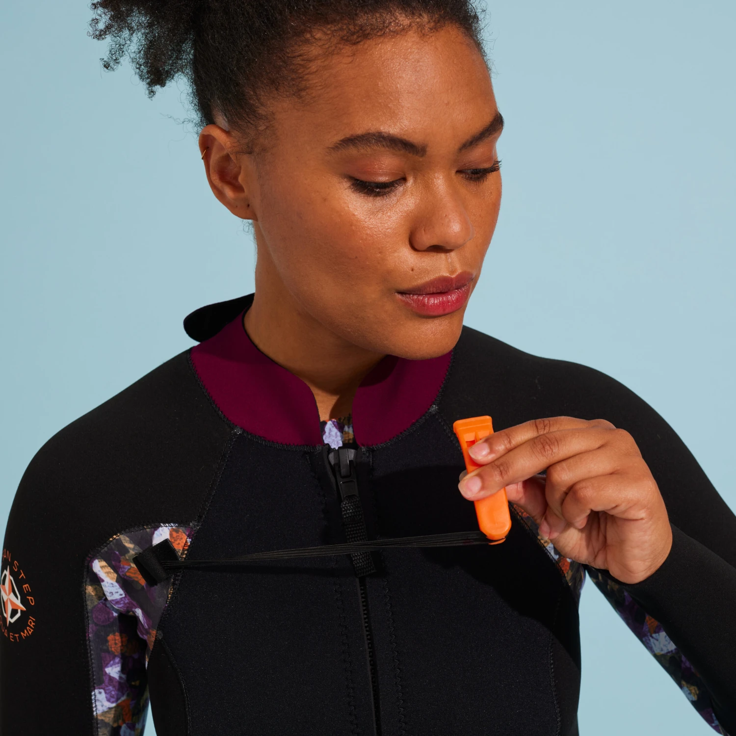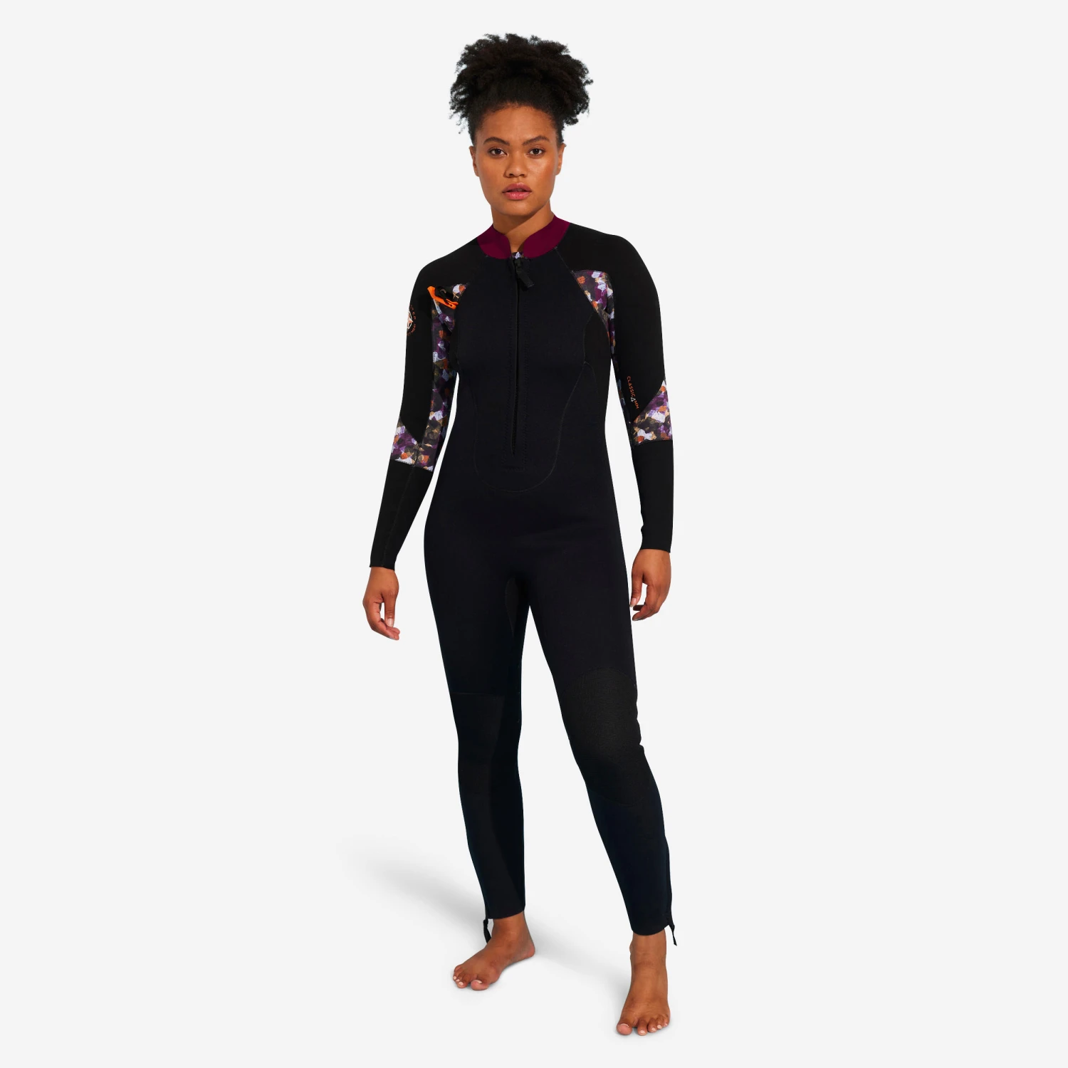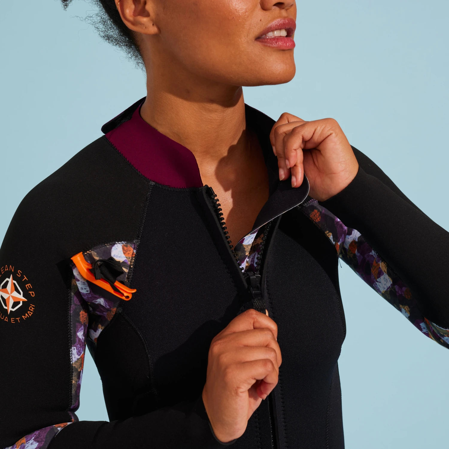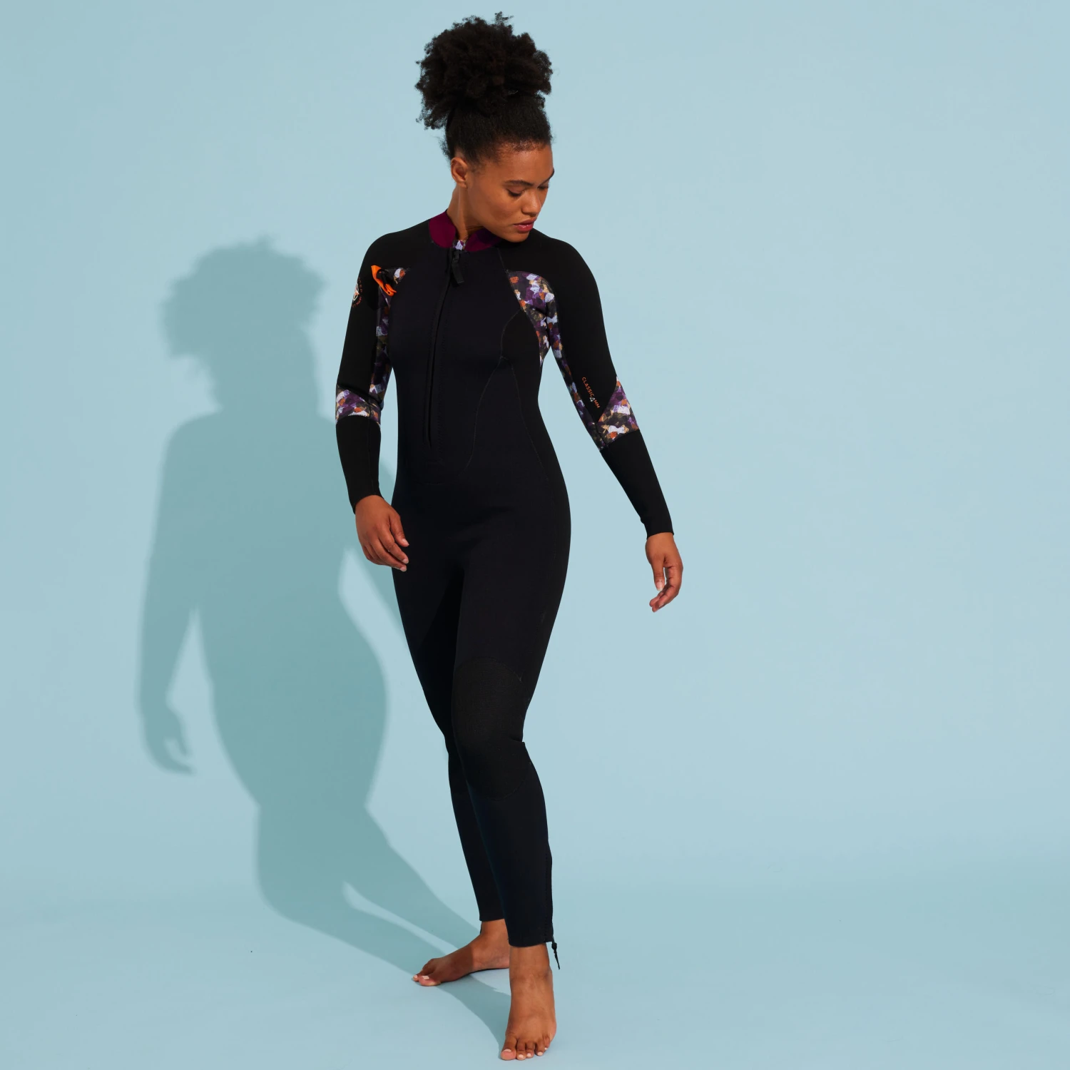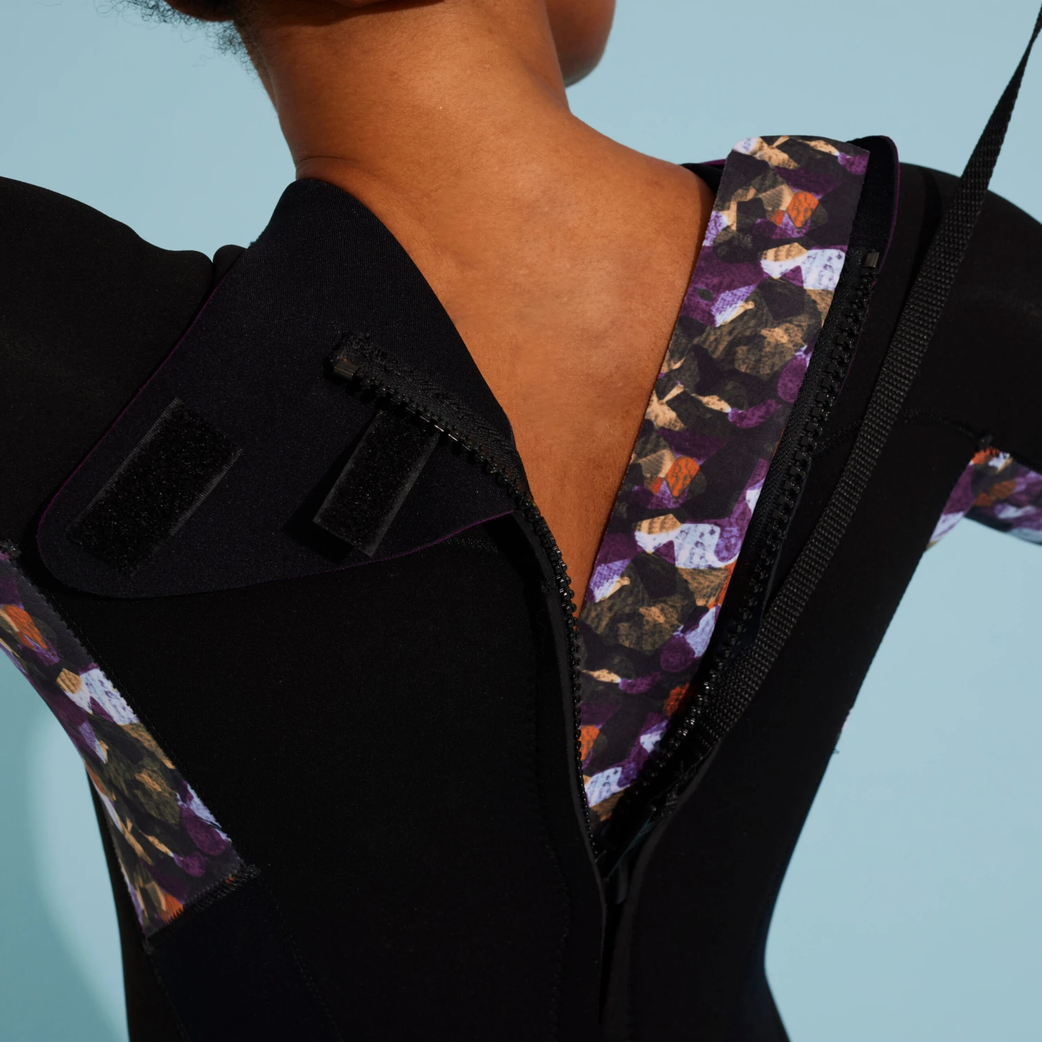 Neoprene wetsuit 4/3 for women who enjoy sea walking and wanting thermal comfort for their upper body.Tired of struggling to put on your wetsuit? Thanks to its double zip, its stretchy neoprene and calf zip fastenings, this wetsuit will provide you with quick and easy putting on motion.
